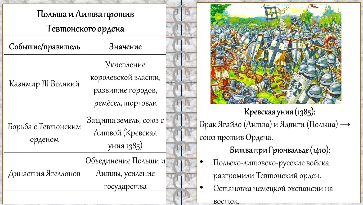Борьба с Тевтонским орденом | Защита земель, союз с Литвой (Кревская уния 1385) |