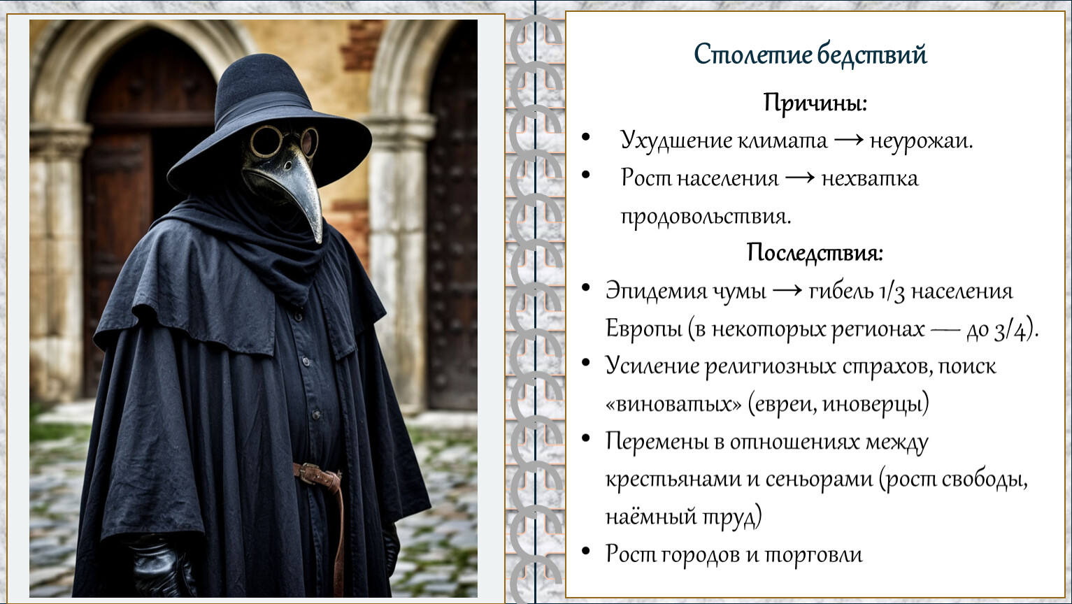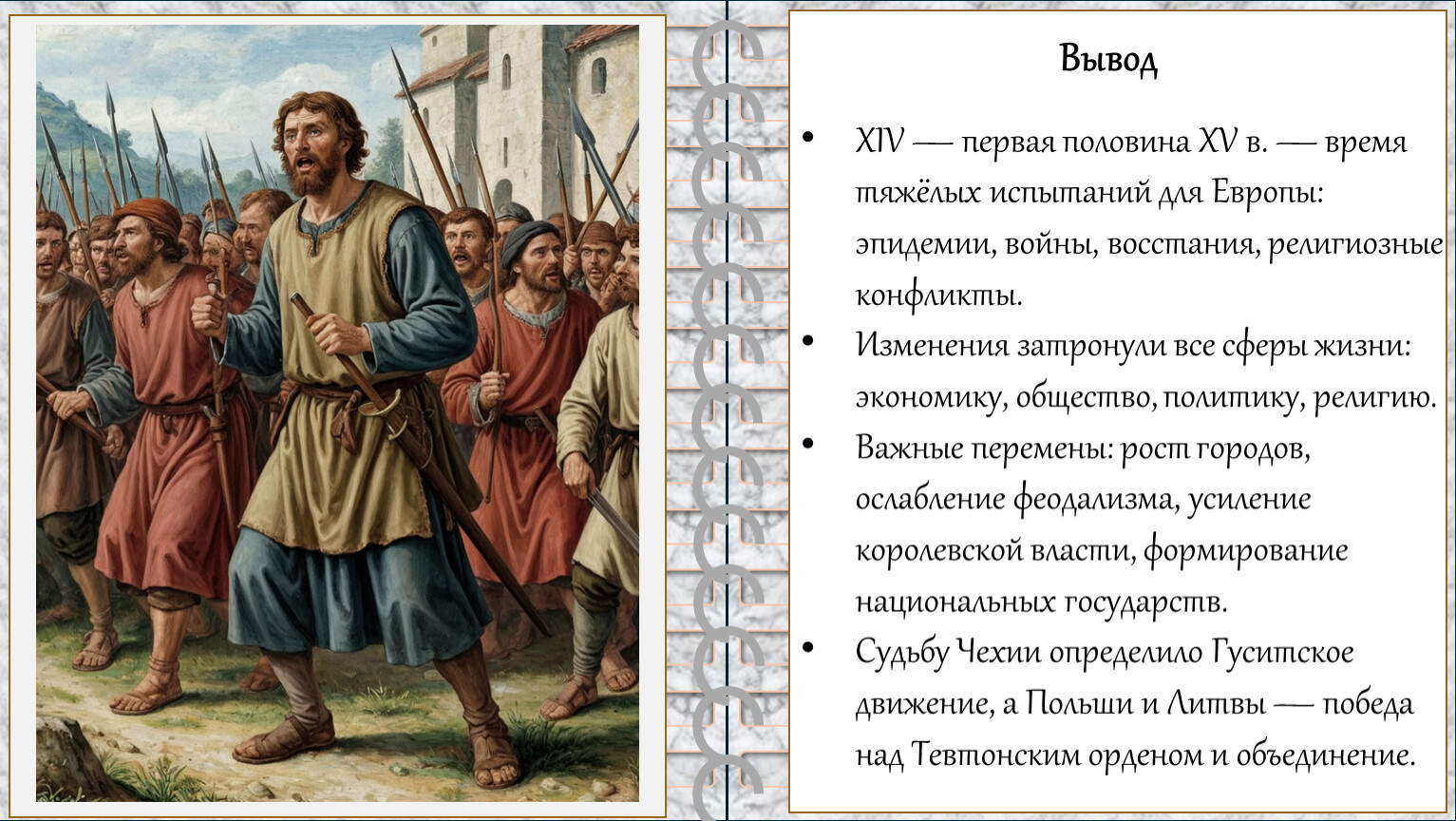 XIV — первая половина XV в. — время тяжёлых испытаний для Европы: эпидемии, войны, восстания, религиозные конфликты.