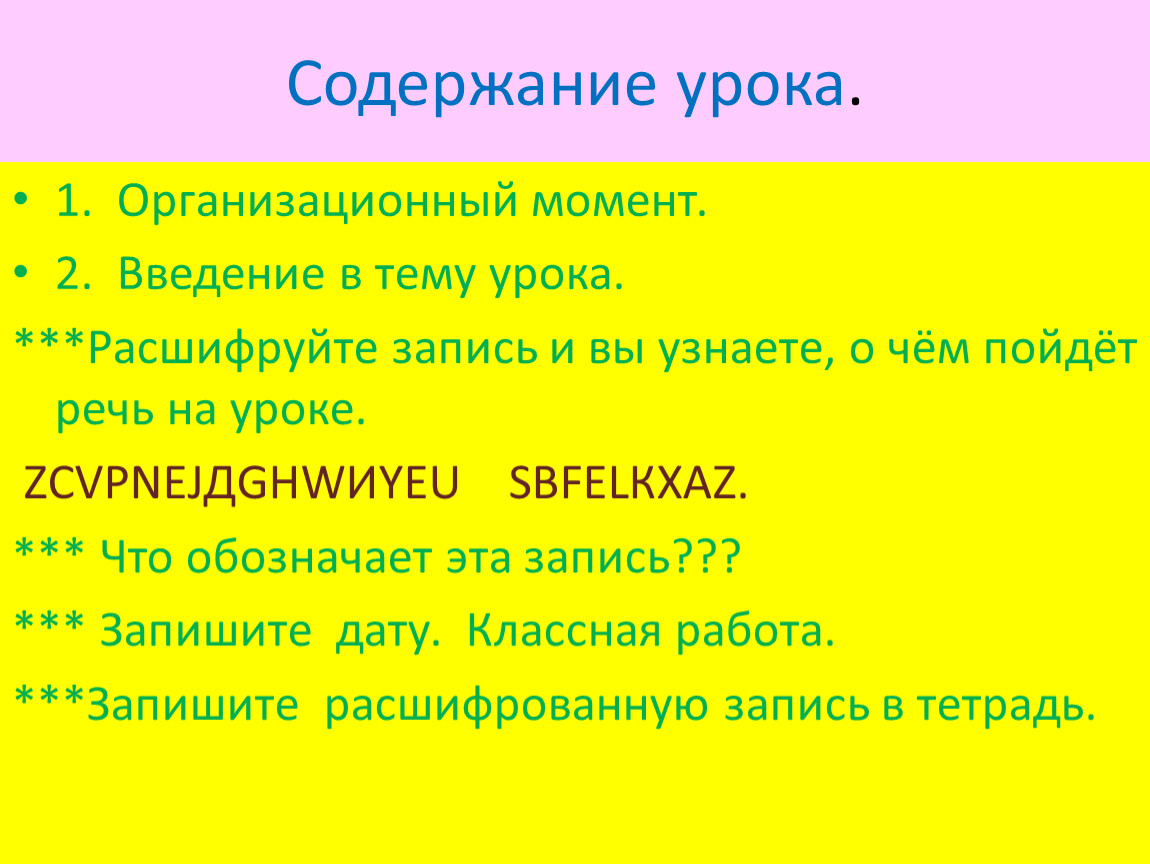 ***Расшифруйте запись и вы узнаете, о чём пойдёт речь на уроке.