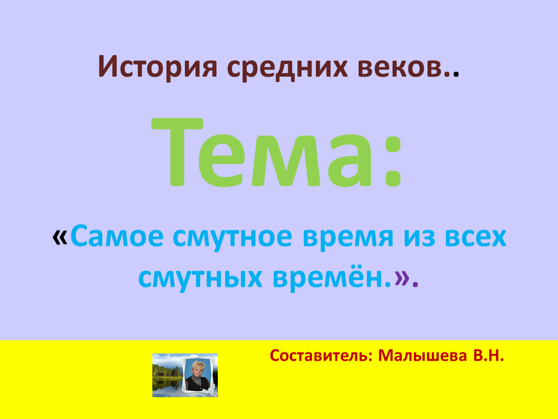 История средних веков..Тема:«Самое смутное время из всех смутных времён.».