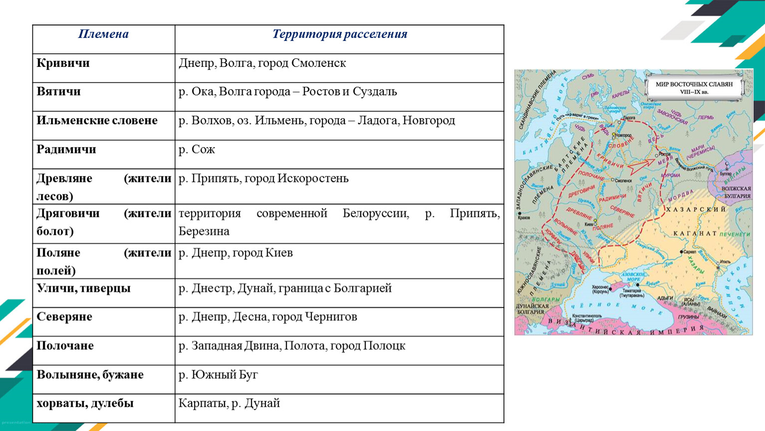 Ильменские словене | р. Волхов, оз. Ильмень, города – Ладога, Новгород |