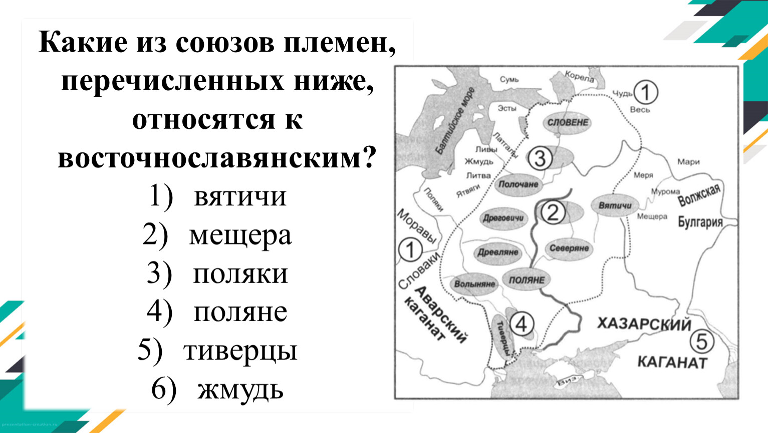 Какие из союзов племен, перечисленных ниже, относятся к восточнославянским?
