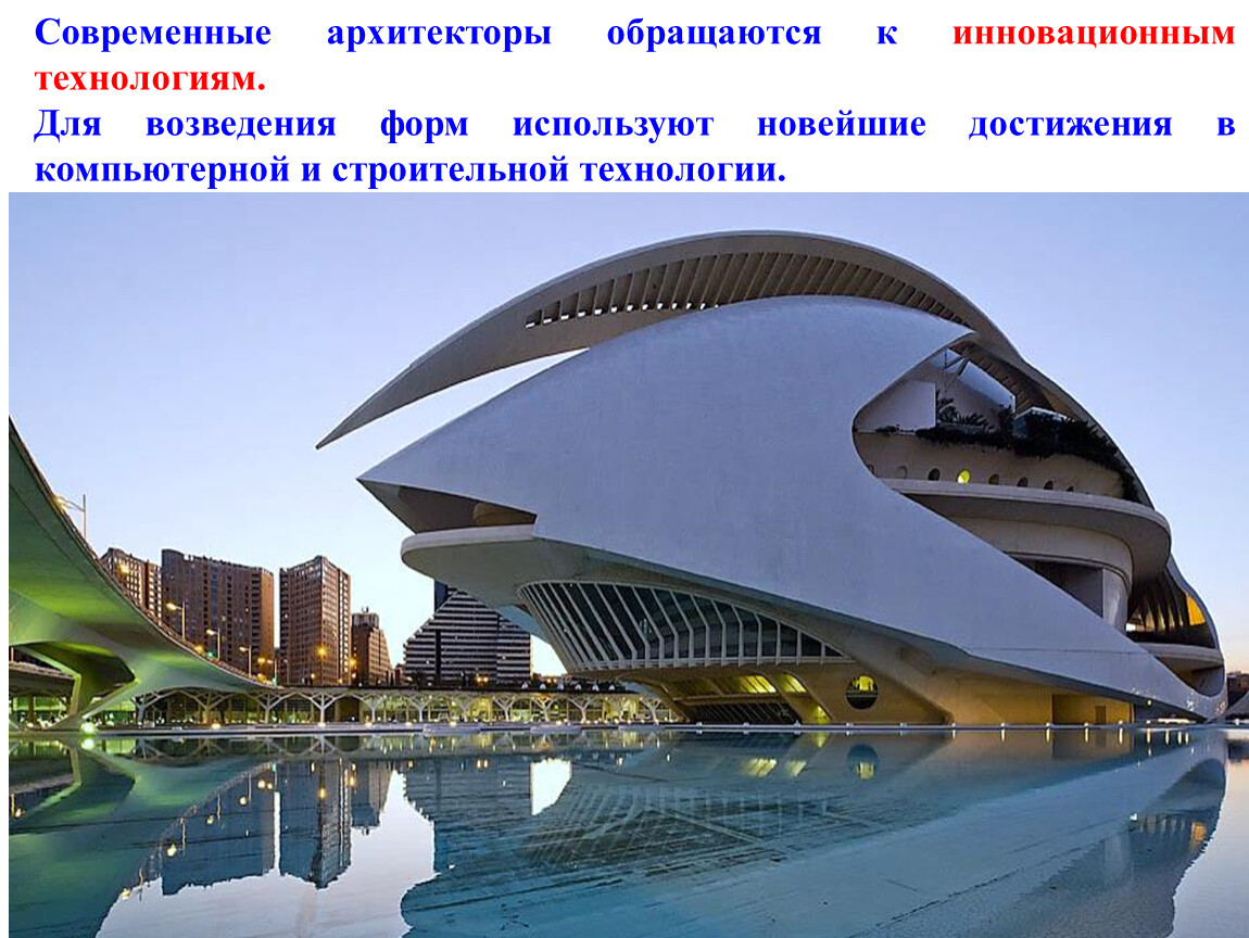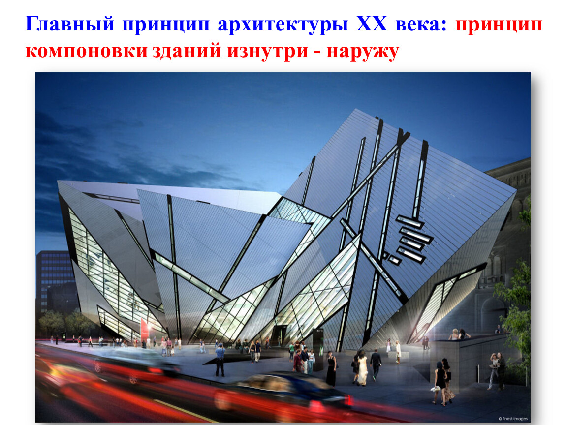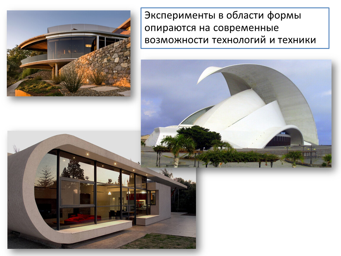 Архитектура нашего времени свободна в выборе идей и форм, она не подчиняется какому-либо определенному стилю. Все стили являются равноправными.