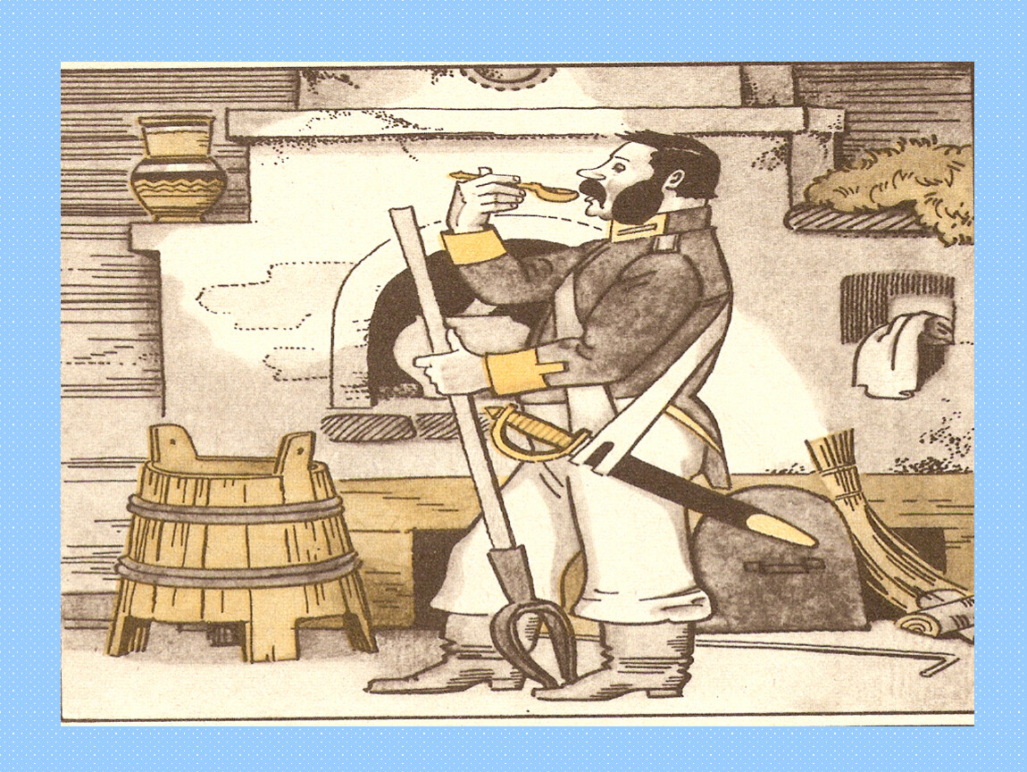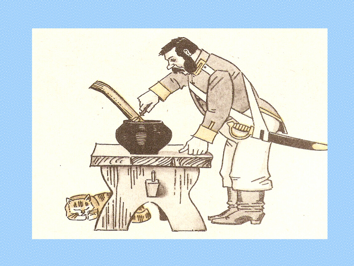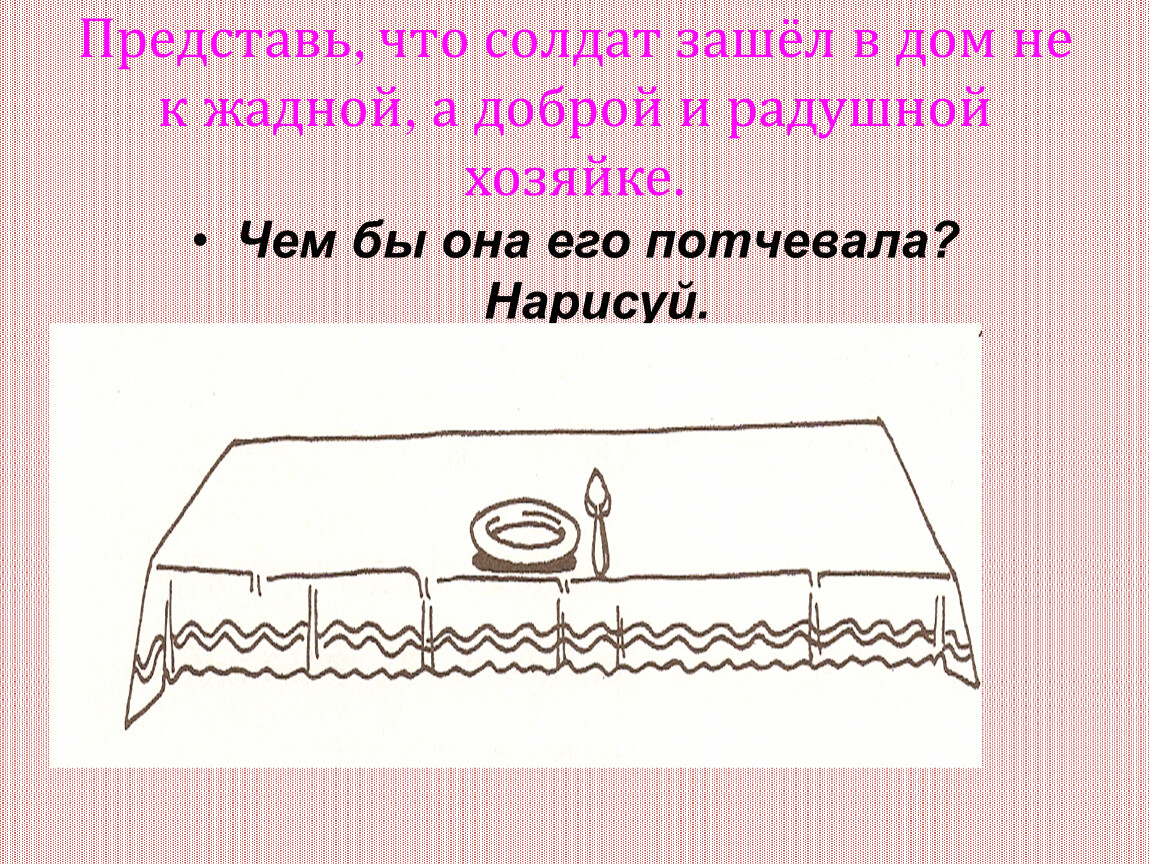 Представь, что солдат зашёл в дом не к жадной, а доброй и радушной хозяйке.