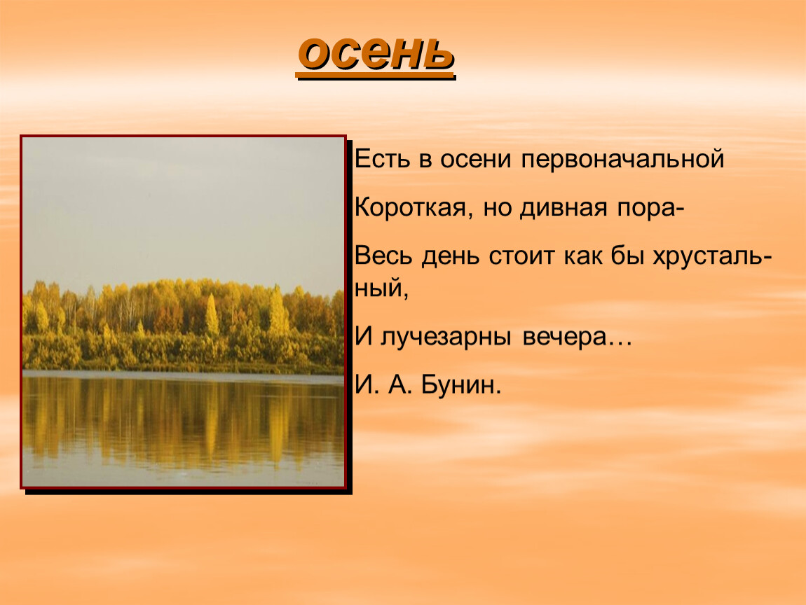 . Унылая пора! Очей очарованье!Приятна мне твоя прощальная краса —Люблю я пышное природы увяданье,В багрец и в золото одетые леса,В их сенях ветра шум и свежее дыханье,И мглой волнистою покрыты небеса,И редкий солнца луч, и первые морозы,И отдаленные седой зимы угрозы.