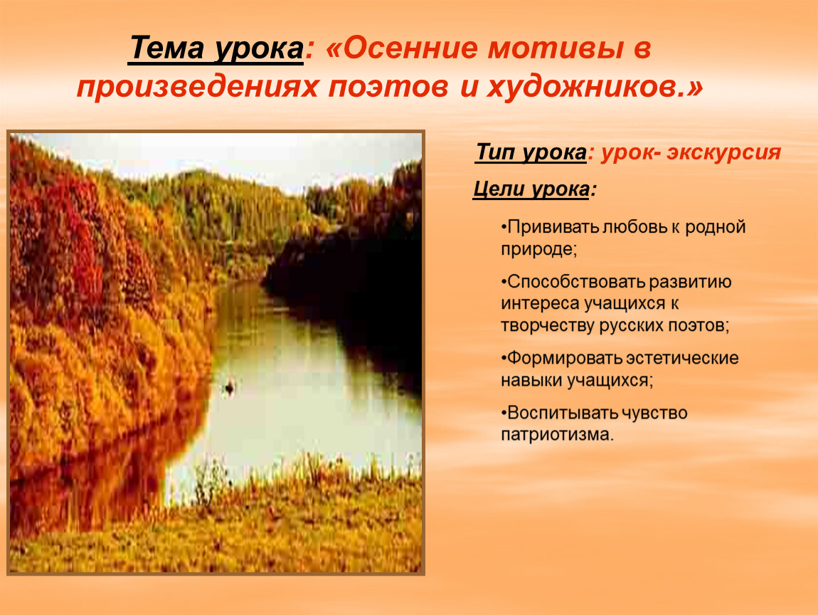 Тема урока: «Осенние мотивы в произведениях поэтов и художников.»