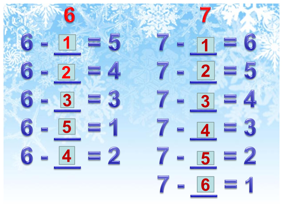 Урок математики в 1 классе Вычитание вида 6 − , 7 − .