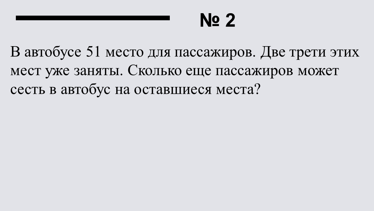 В автобусе 51 место для пассажиров. Две трети этих мест уже заняты. Сколько еще пассажиров может сесть в автобус на оставшиеся места?