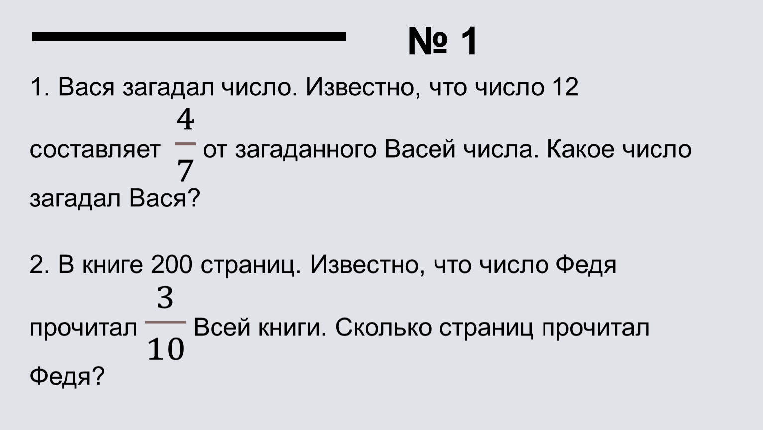 1. Вася загадал число. Известно, что число 12 составляет 4 7 4 4 7 7 4 7 от загаданного Васей числа. Какое число загадал Вася?