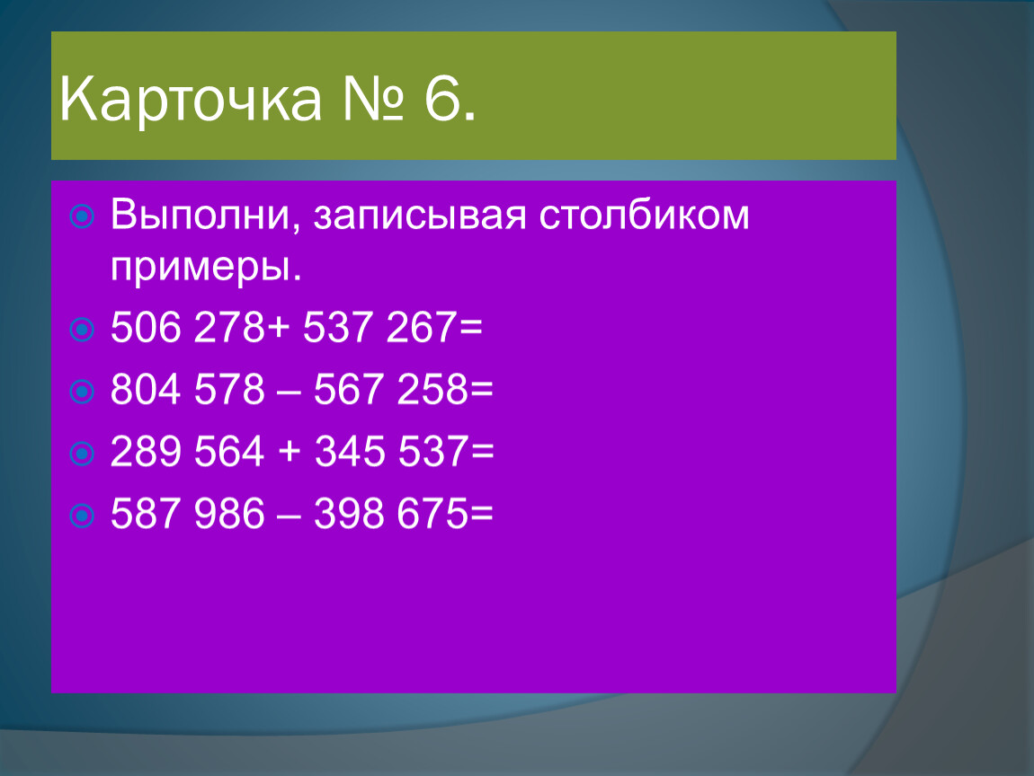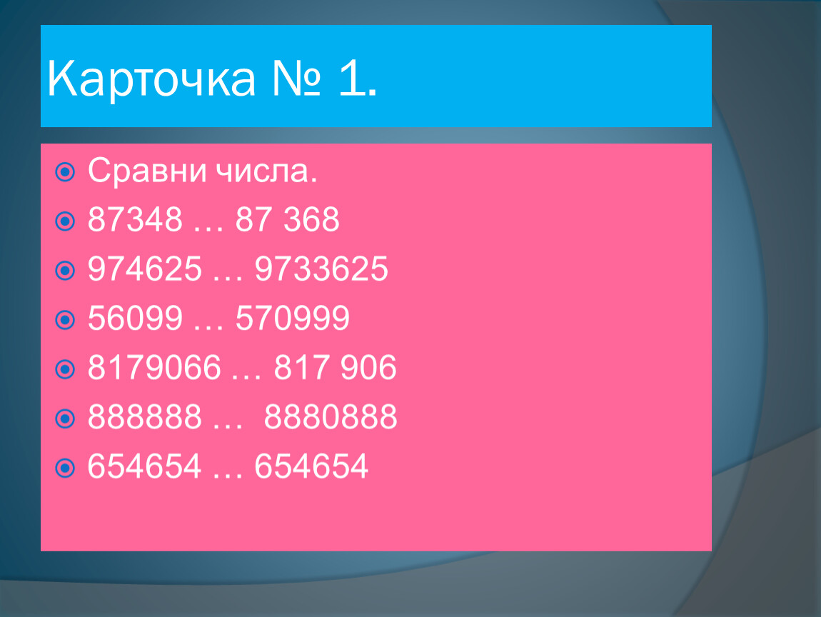 Математика.Тема:Дидактический материал для 5 класса в Начале года.»