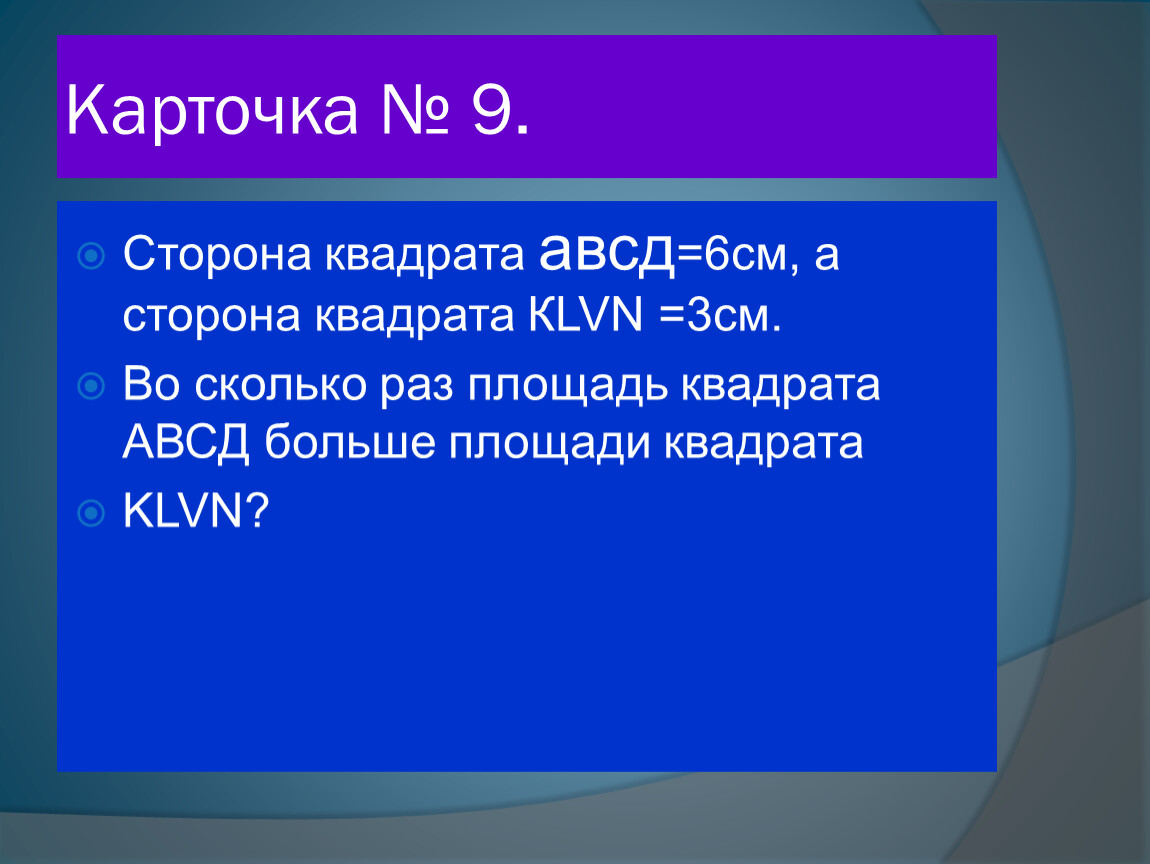 Сторона квадрата авсд=6см, а сторона квадрата КLVN =3cм.