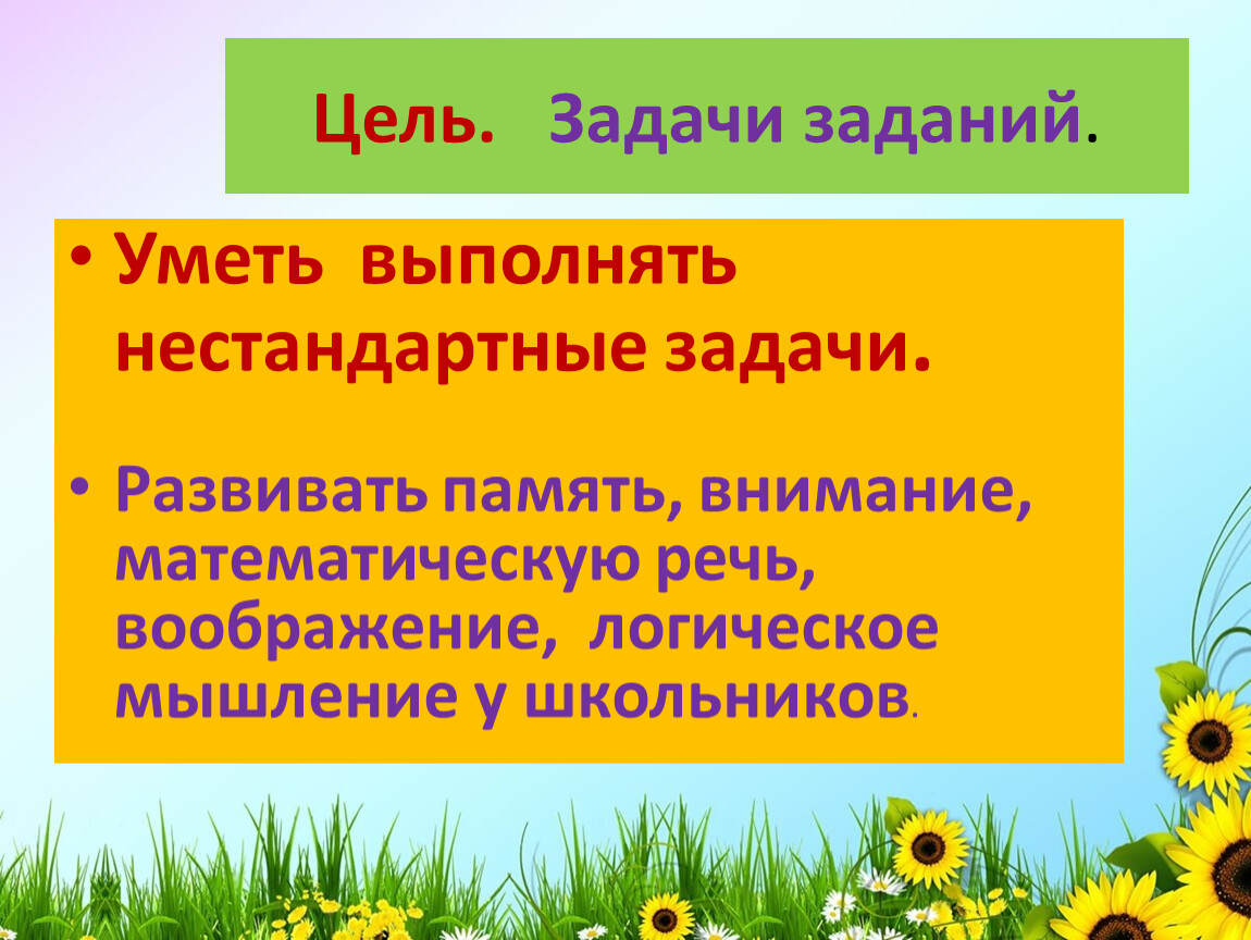 Цель. Задачи заданий.