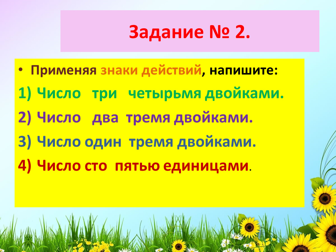 Применяя знаки действий, напишите: