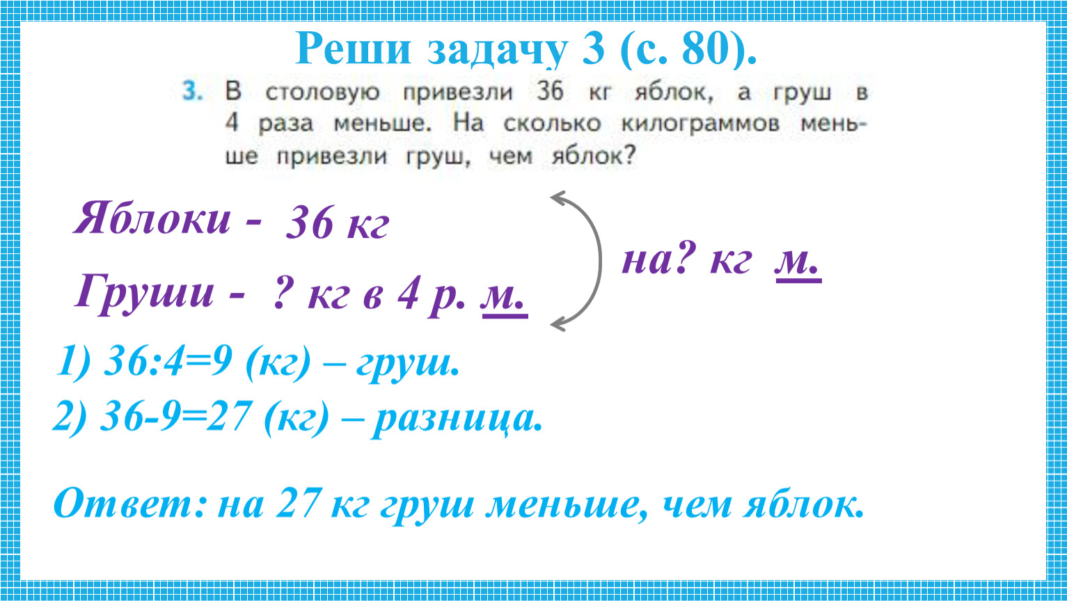 1) 18 : 6 = 3 (кг) – варенья в 1 банке.