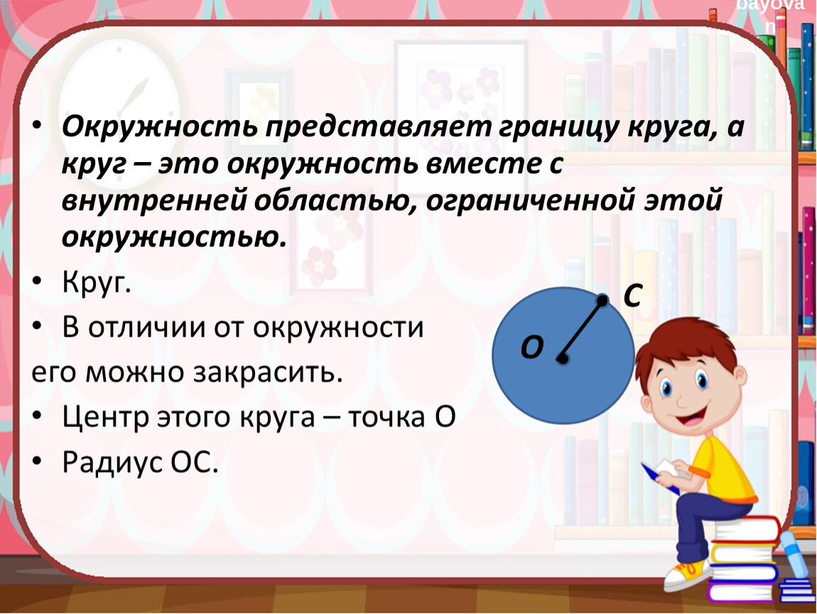 Окружность представляет границу круга, а круг – это окружность вместе с внутренней областью, ограниченной этой окружностью.