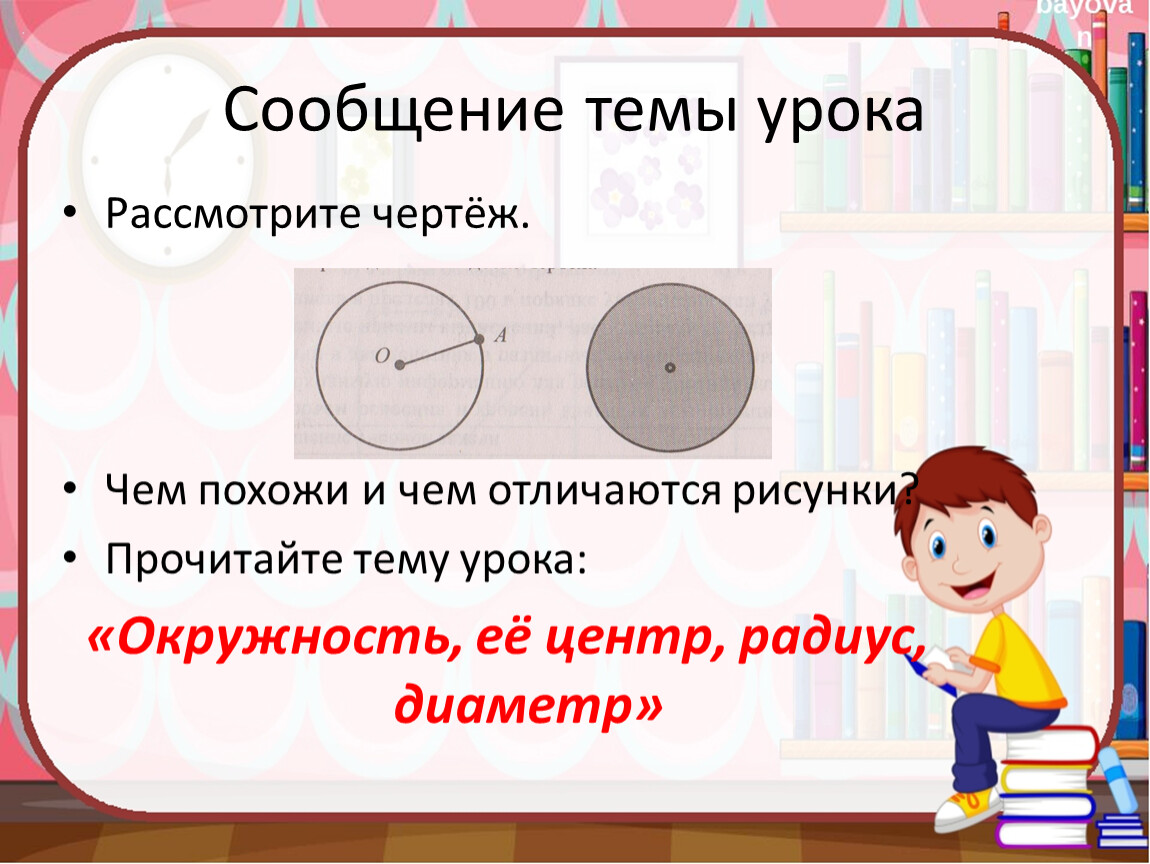 «Окружность, её центр, радиус, диаметр»
