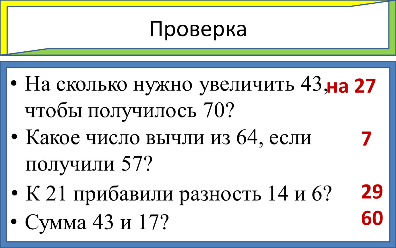 На сколько нужно увеличить 43, чтобы получилось 70?