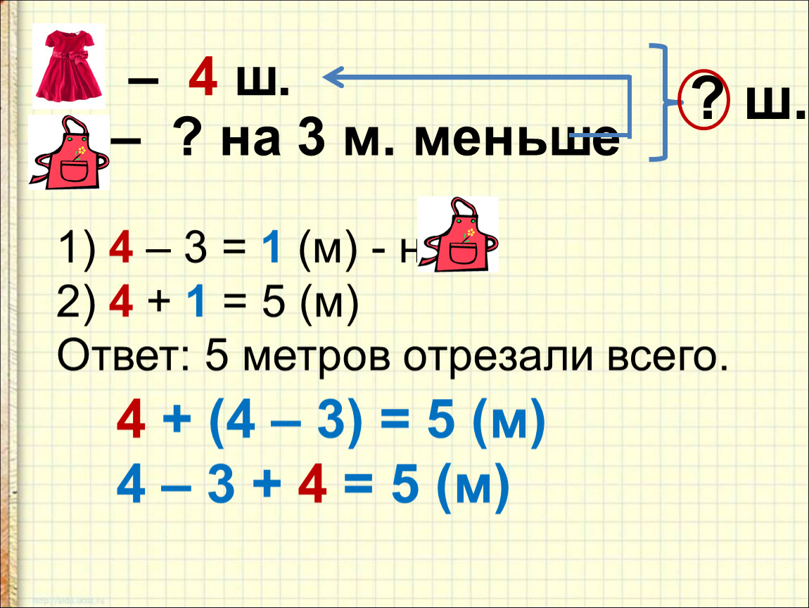 4 – 3 = 1 (м) - на