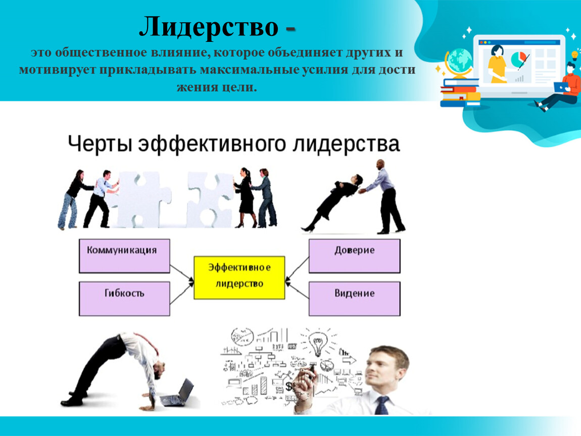 Лидерство - это общественное влияние, которое объединяет других имотивирует прикладывать максимальные усилия для достижения цели.