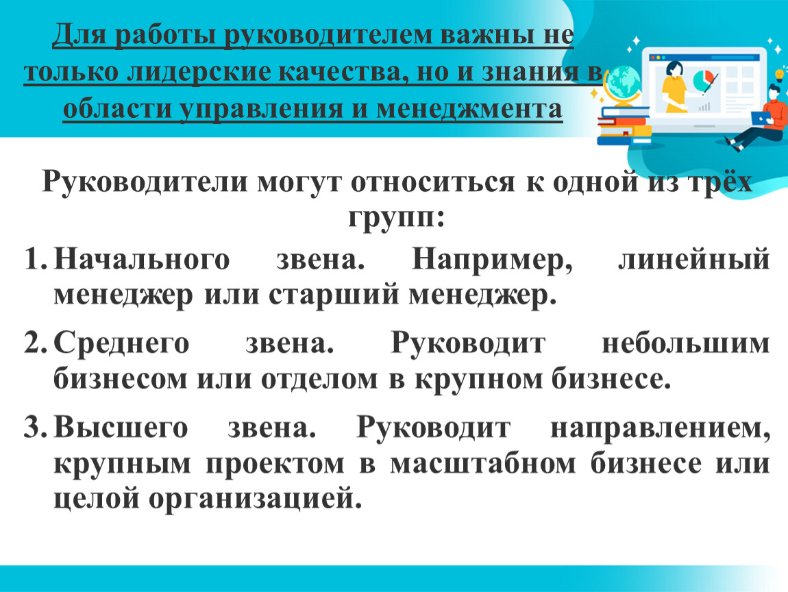 Для работы руководителем важны не только лидерские качества, но и знания в области управления и менеджмента