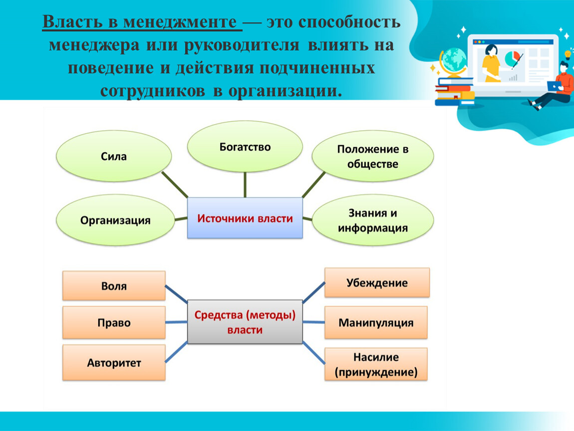 Власть в менеджменте — это способность менеджера или руководителя влиять на поведение и действия подчиненных сотрудников в организации.