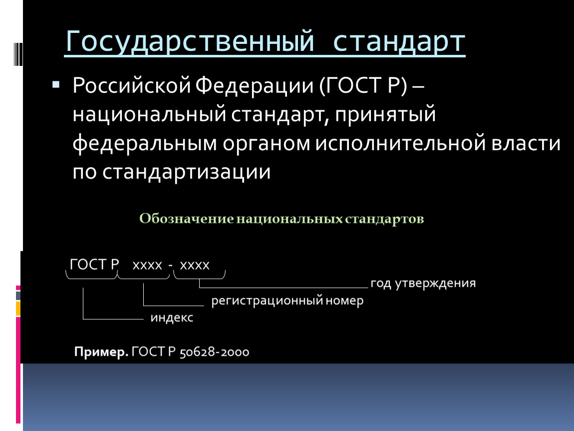 Российской Федерации (ГОСТ Р) – национальный стандарт, принятый федеральным органом исполнительной власти по стандартизации