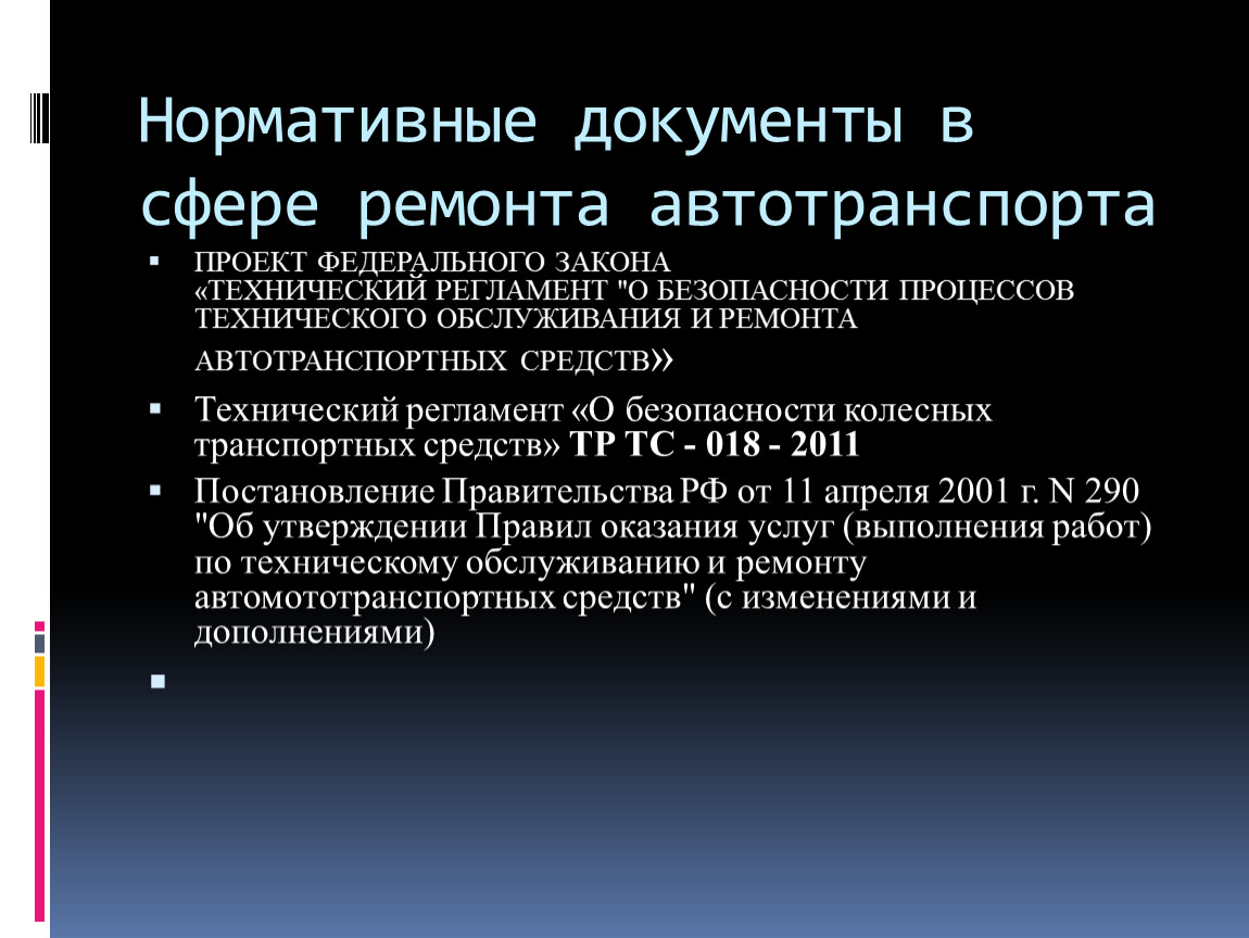 Нормативные документы в сфере ремонта автотранспорта