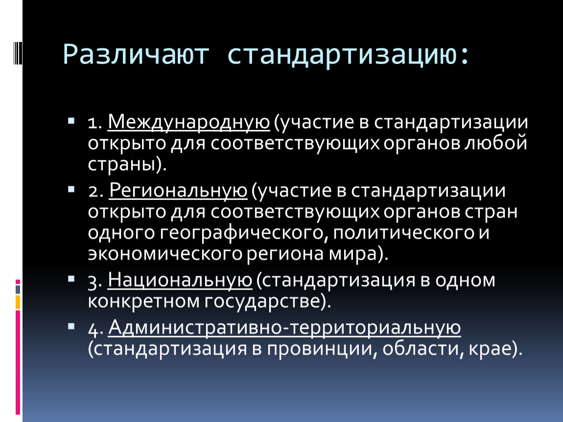 Различают стандартизацию:
