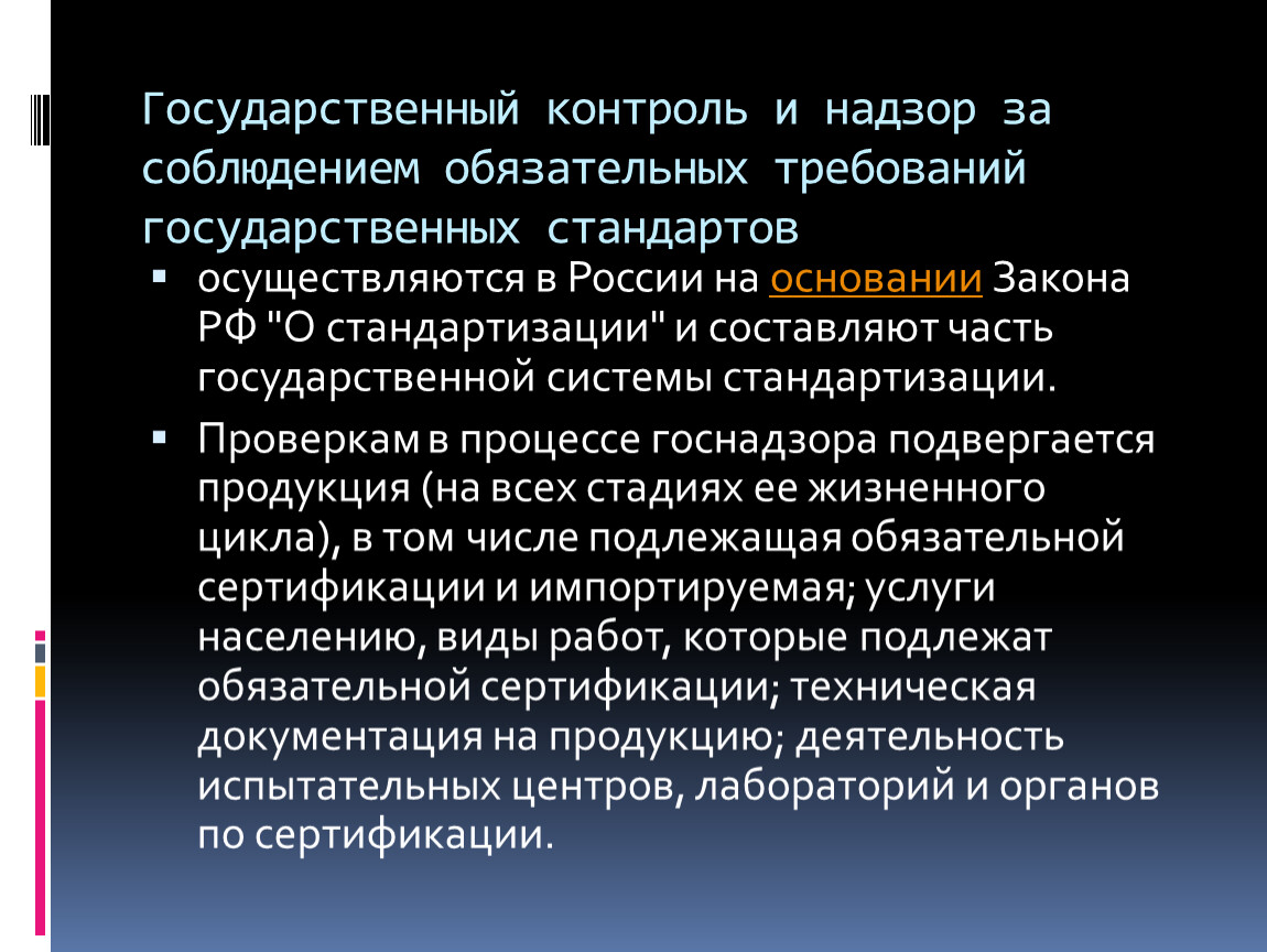 Государственный контроль и надзор за соблюдением обязательных требований государственных стандартов