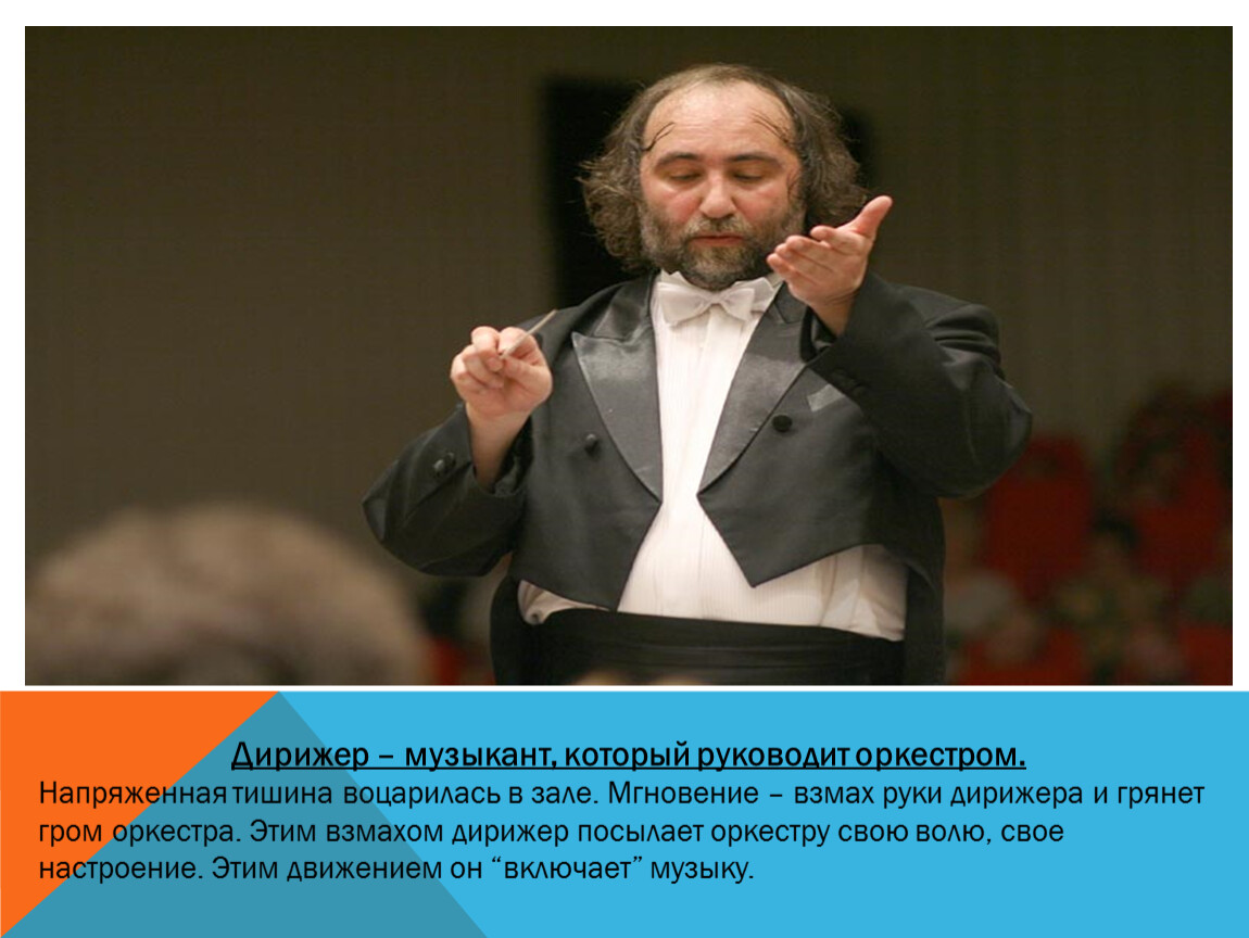 Дирижер – музыкант, который руководит оркестром.