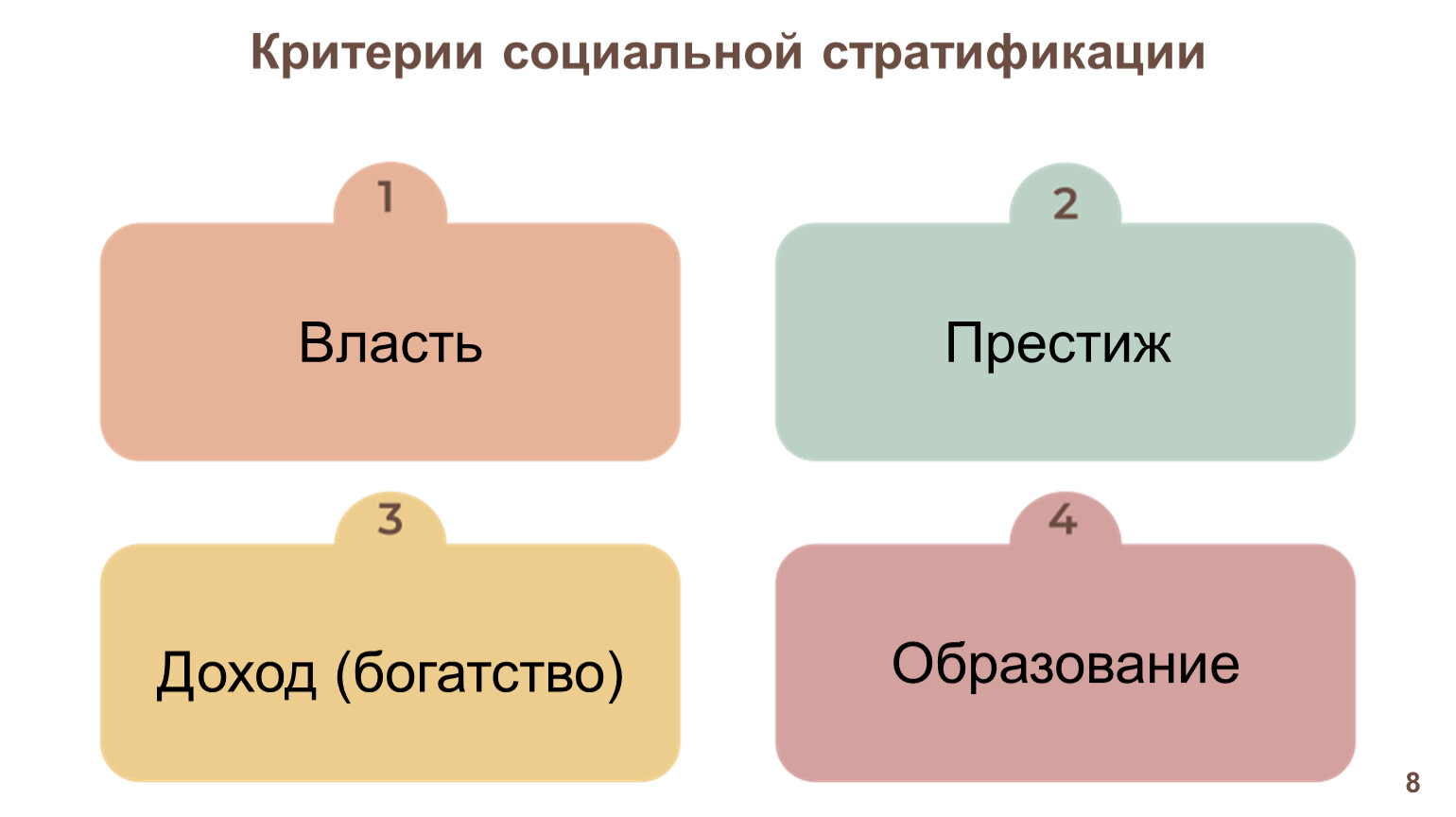 Неравное распределение ограниченных ресурсов, различия в способностях и возможностях людей, неодинаковый престиж социальных статусов и многие другие факторы являются основой социальной стратификации.