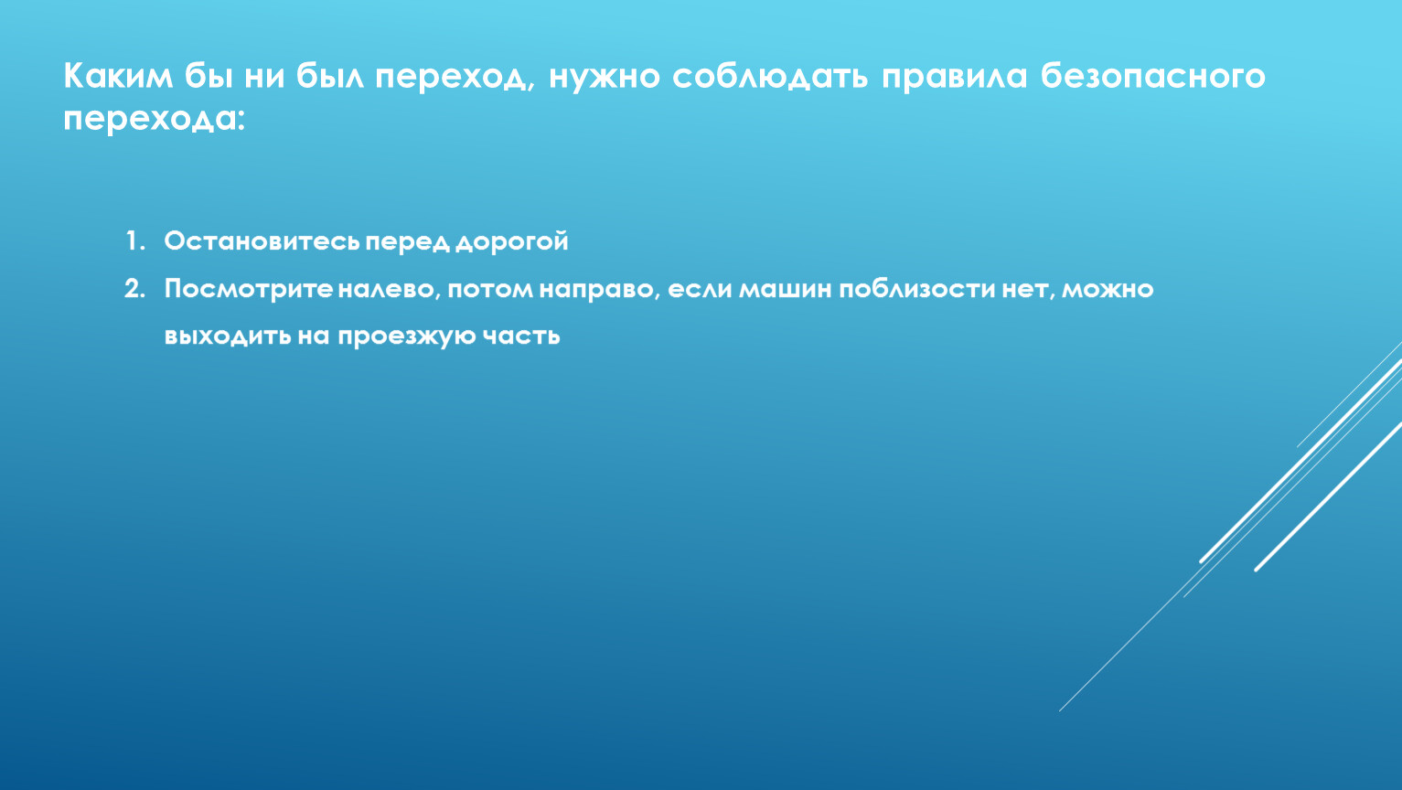 Каким бы ни был переход, нужно соблюдать правила безопасного перехода: