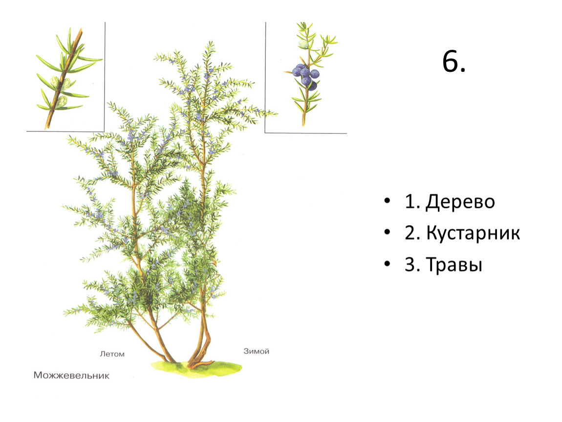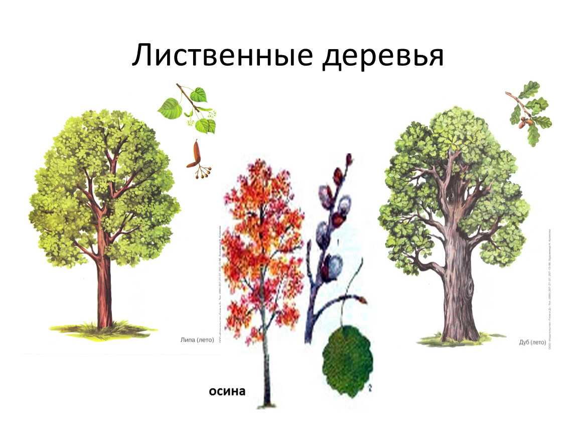 Берёза, рябина, осина, тополь и орешник– лиственные растения.