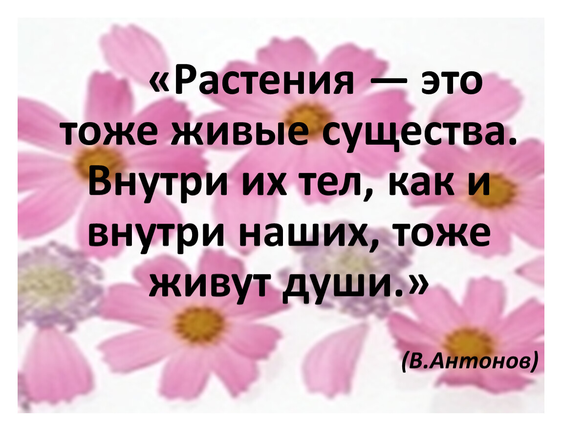 «Растения — это тоже живые существа. Внутри их тел, как и внутри наших, тоже живут души.»