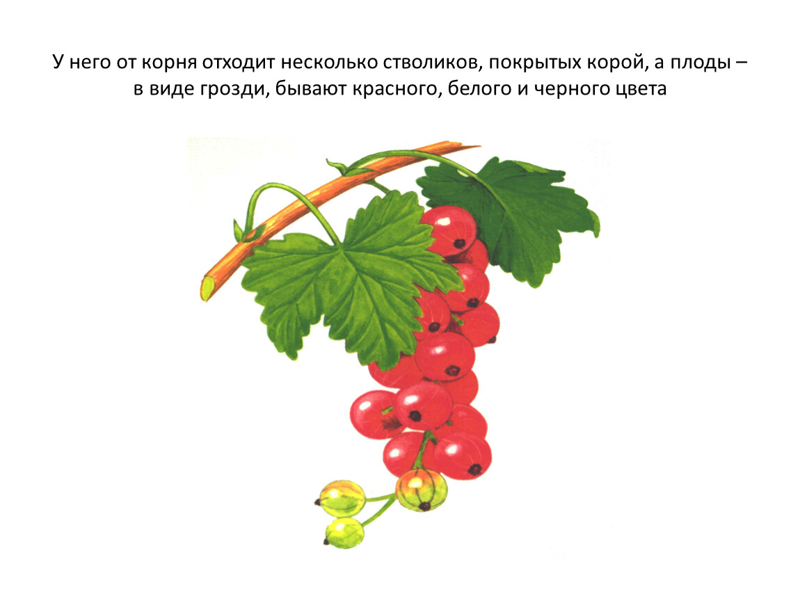 У него от корня отходит несколько стволиков, покрытых корой, а плоды – в виде грозди, бывают красного, белого и черного цвета