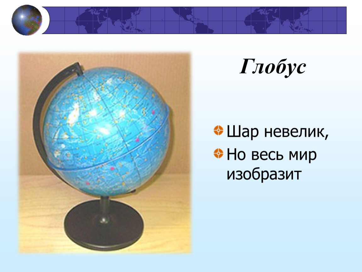 Есть другое определение глобуса. Глобус – это модель Земли в миллион раз меньше самой планеты Земля.