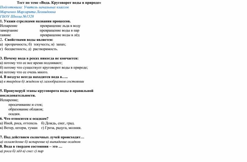 Тест по теме «Вода. Круговорот воды в природе»