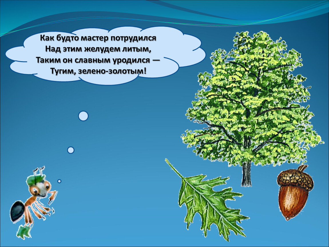 Как будто мастер потрудился Над этим желудем литым, Таким он славным уродился — Тугим, зелено-золотым!