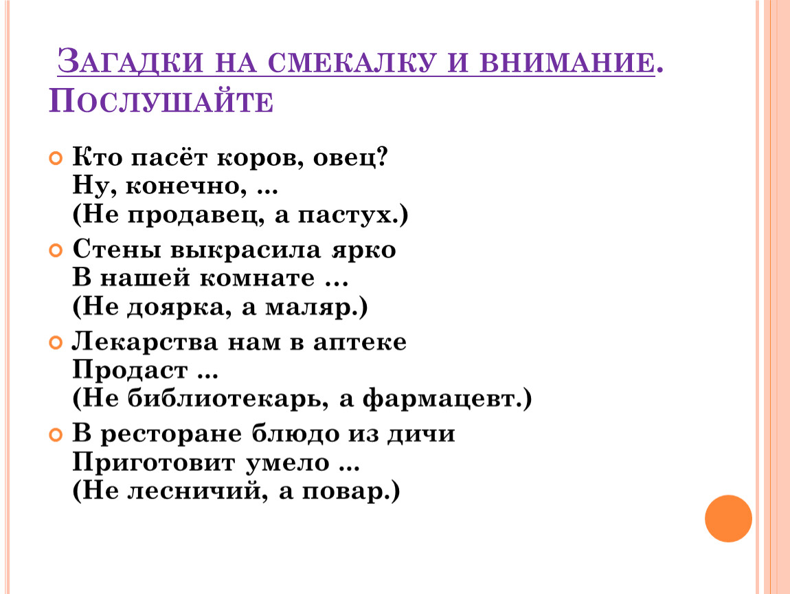 Загадки на смекалку и внимание. Послушайте