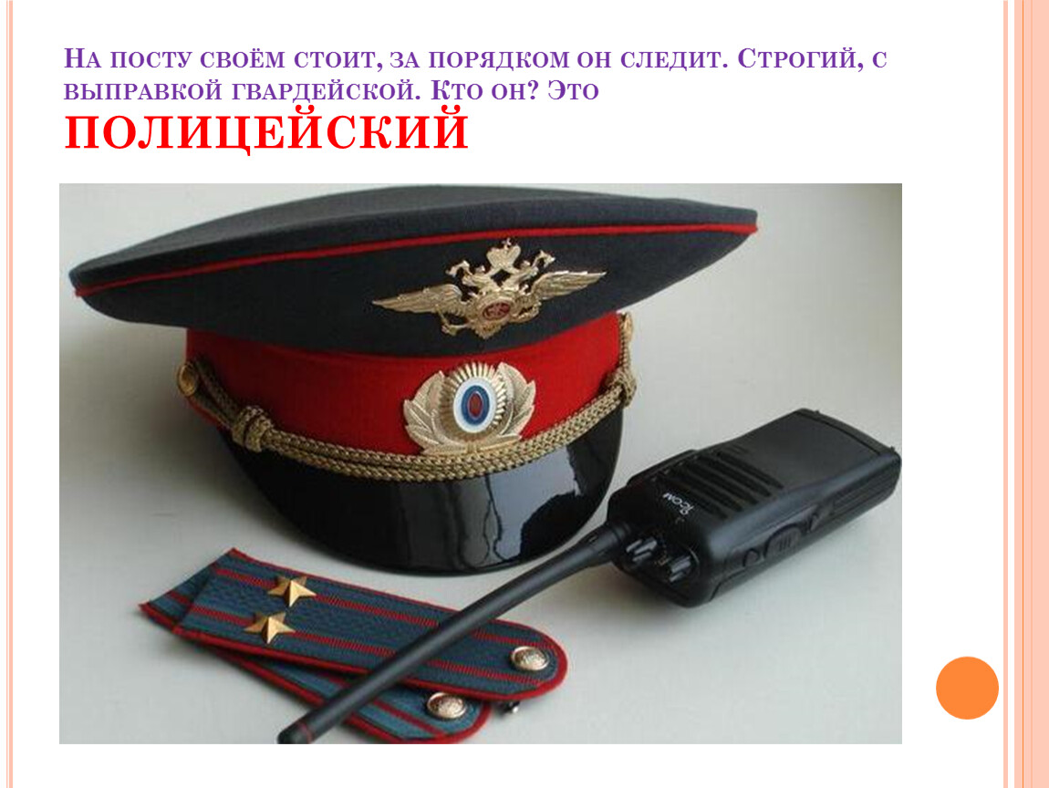На посту своём стоит, за порядком он следит. Строгий, с выправкой гвардейской. Кто он? Это ПОЛИЦЕЙСКИЙ