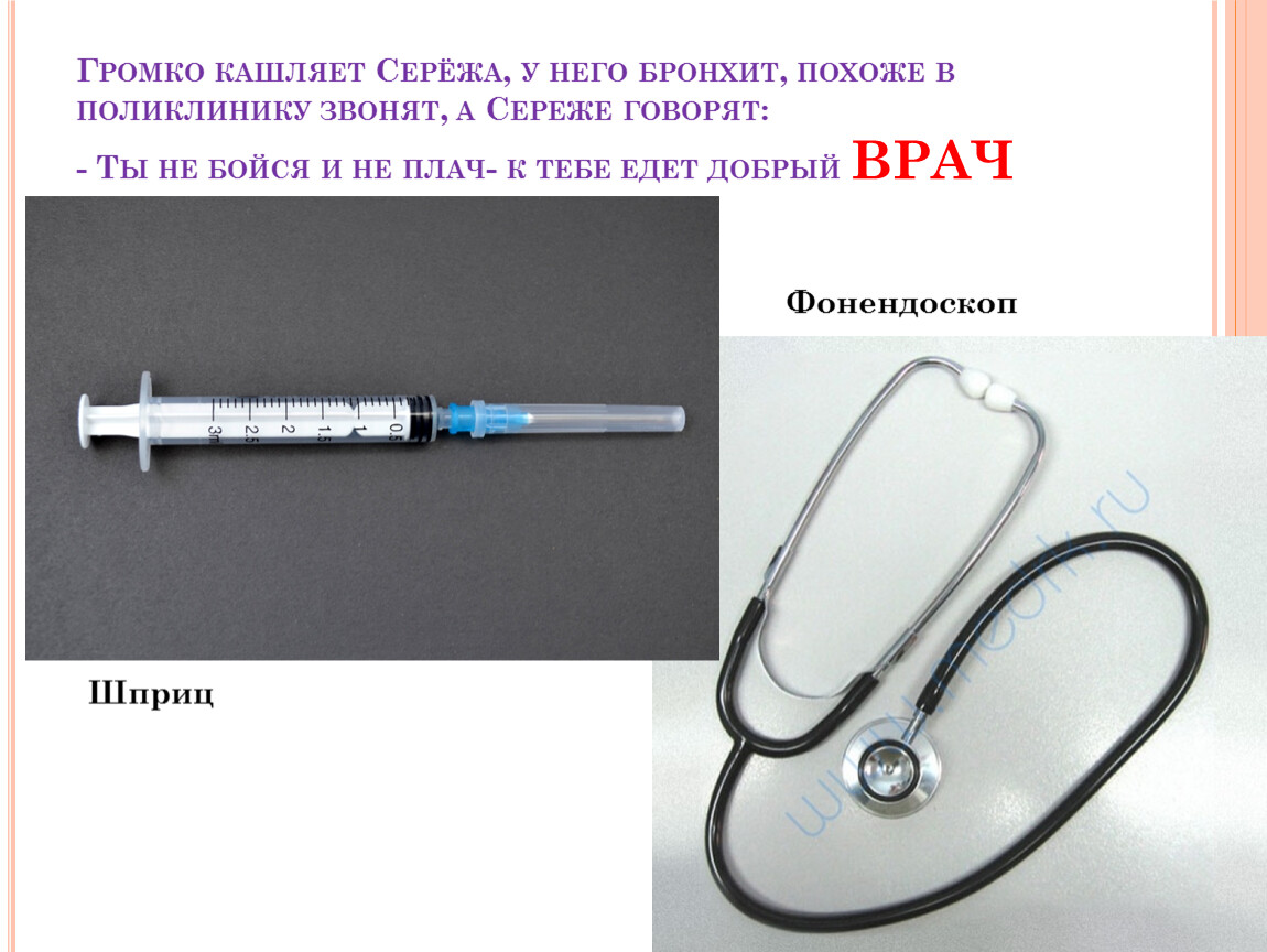 Громко кашляет Серёжа, у него бронхит, похоже в поликлинику звонят, а Сереже говорят:- Ты не бойся и не плач- к тебе едет добрый ВРАЧ