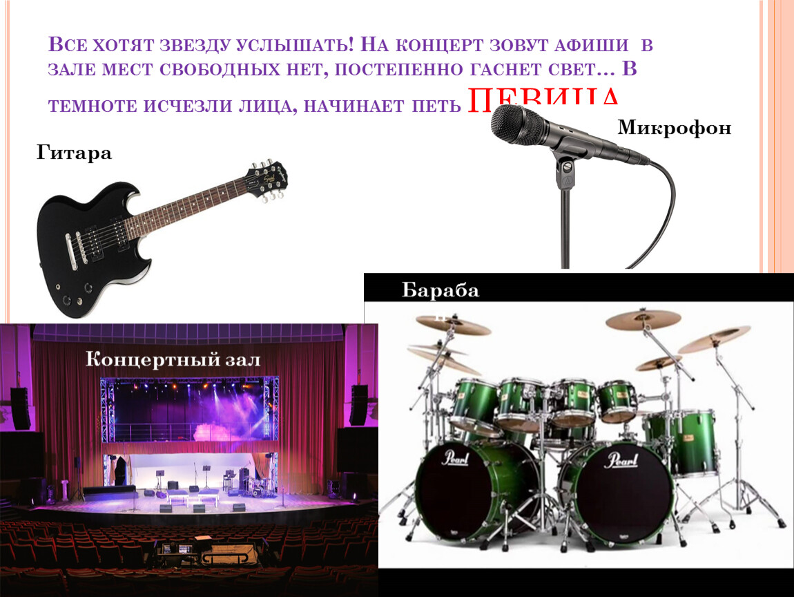 Все хотят звезду услышать! На концерт зовут афиши в зале мест свободных нет, постепенно гаснет свет… В темноте исчезли лица, начинает петь ПЕВИЦА