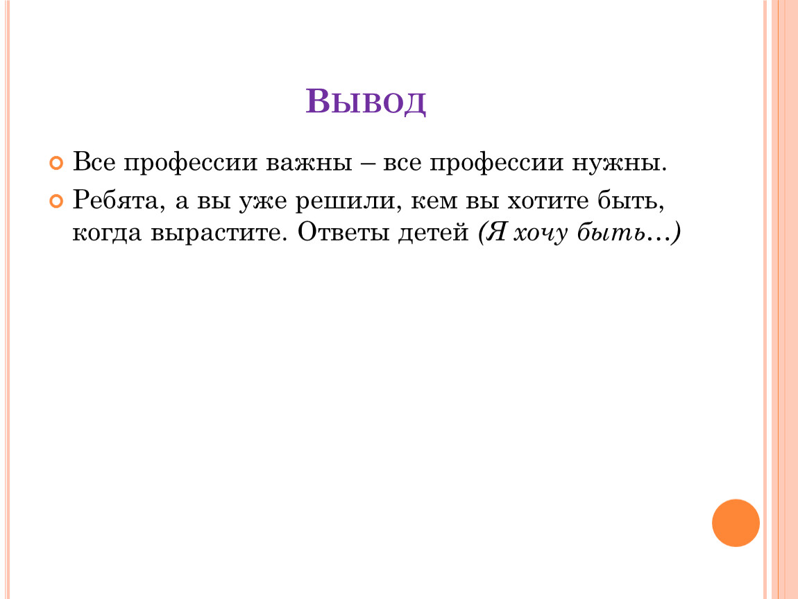 Ребята, а вы уже решили, кем вы хотите быть, когда вырастите. Ответы детей (Я хочу быть…)