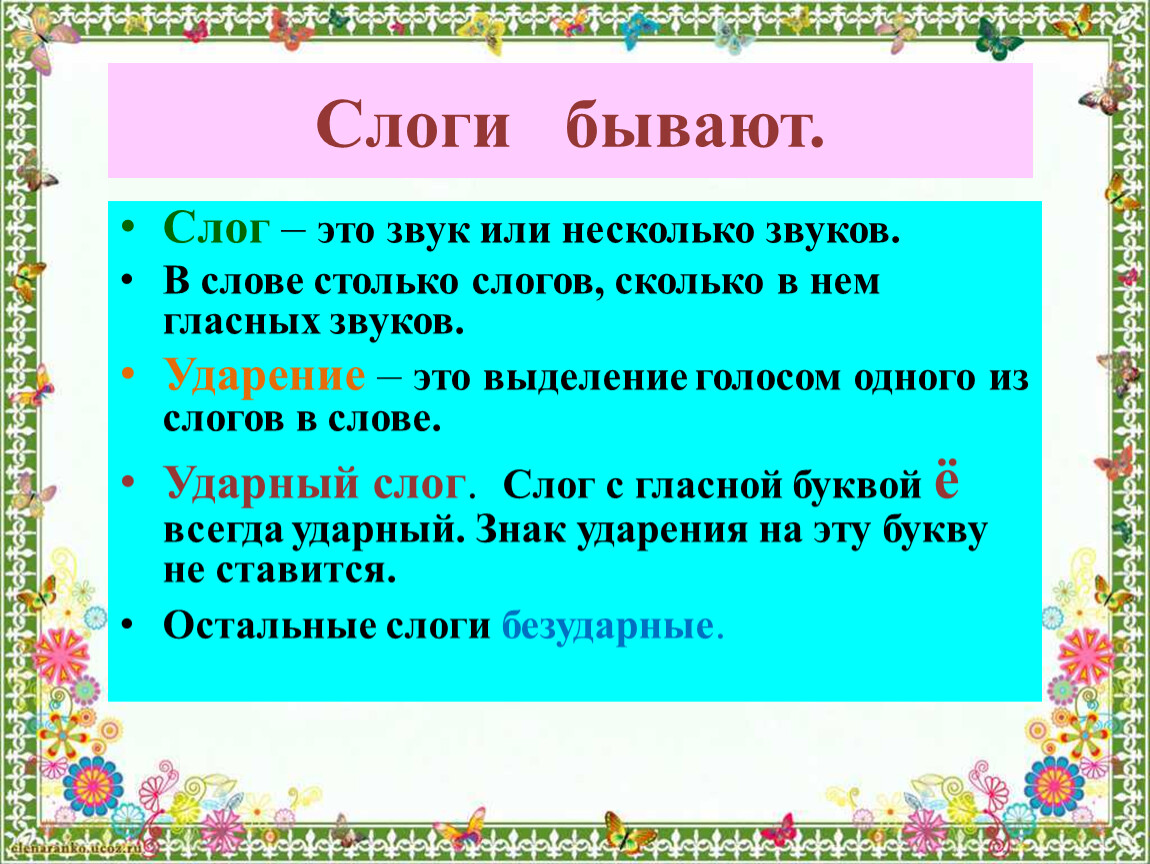 Слог – это звук или несколько звуков.