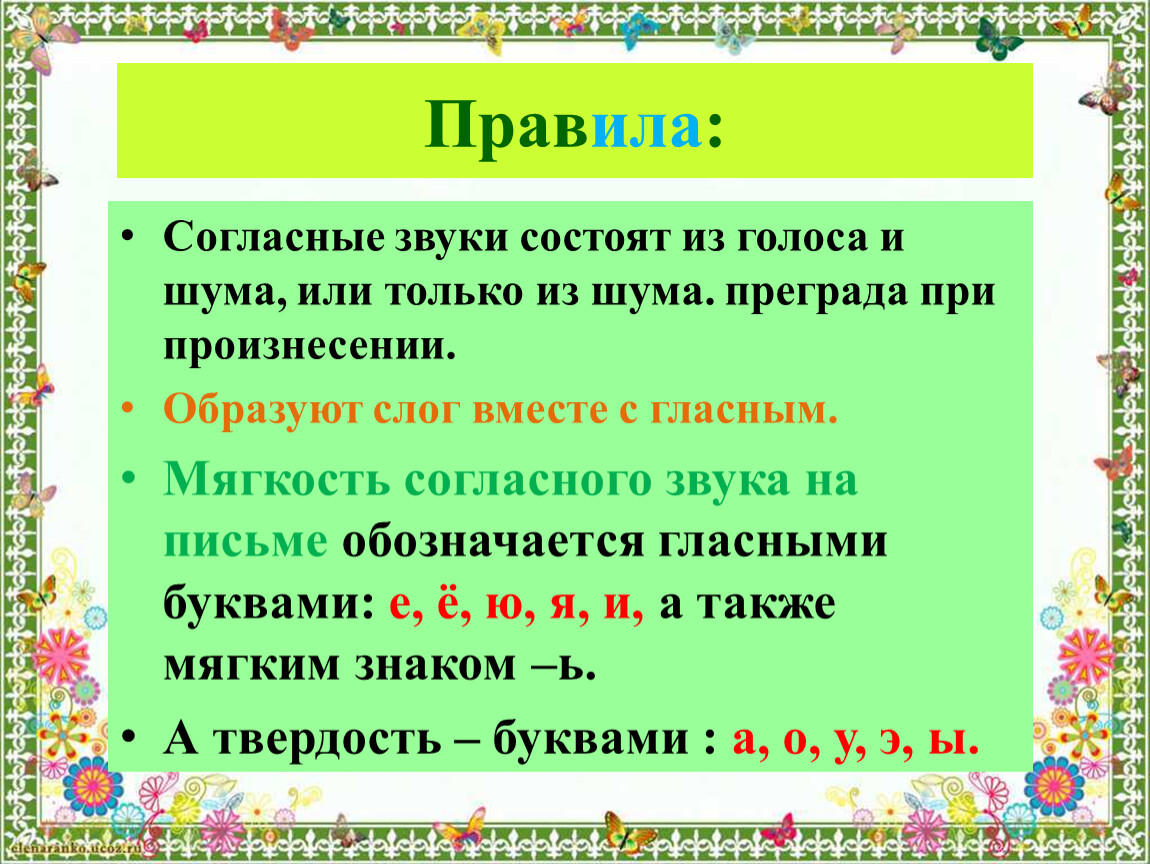 Согласные звуки состоят из голоса и шума, или только из шума. преграда при произнесении.