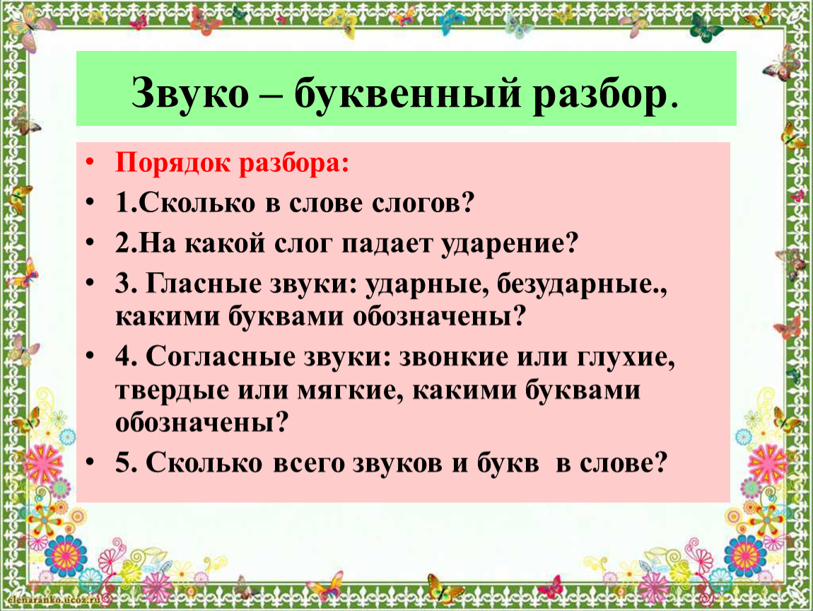 Звуко – буквенный разбор.