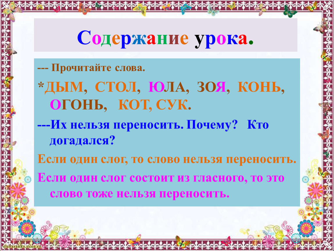 ---Какие слова нельзя переносить ?