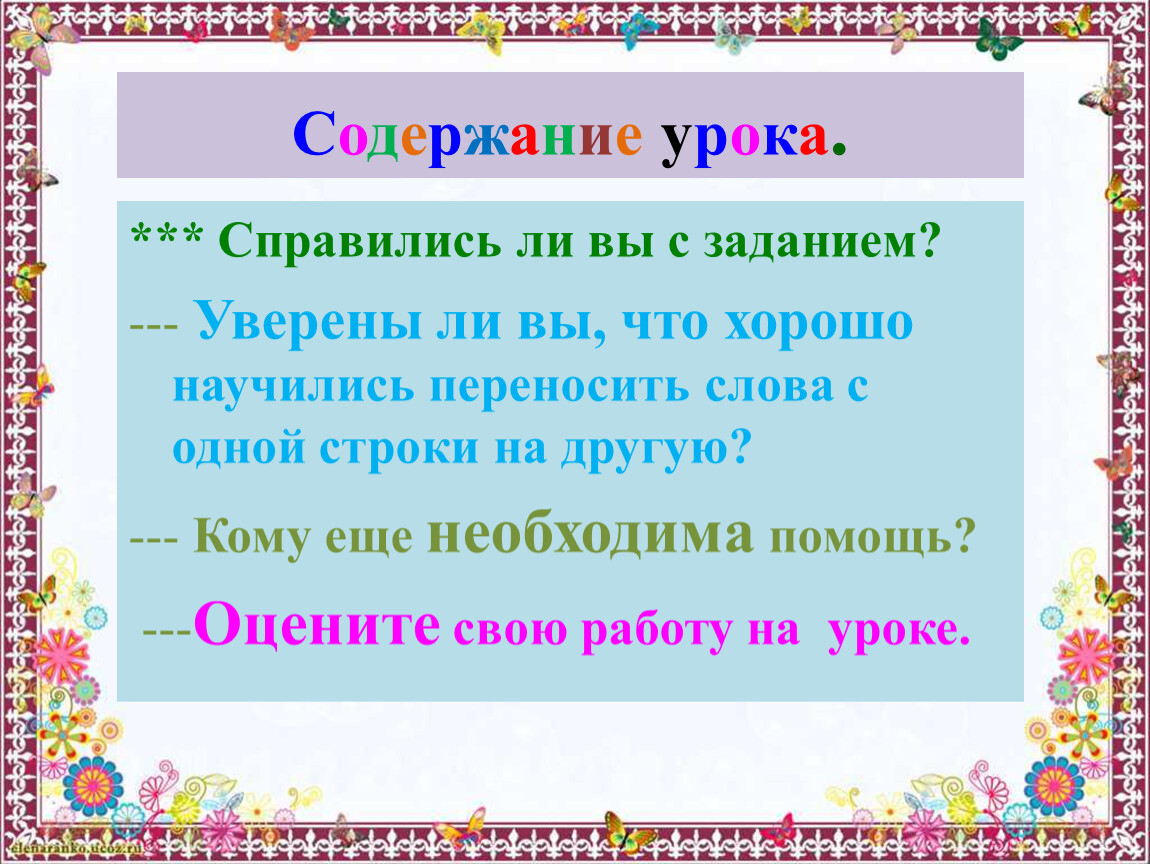 *** Уметь переносить слова с одной строки на другую.