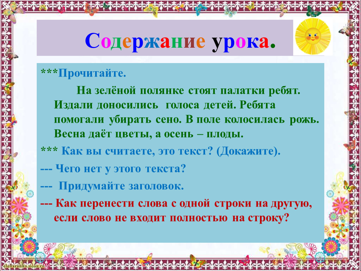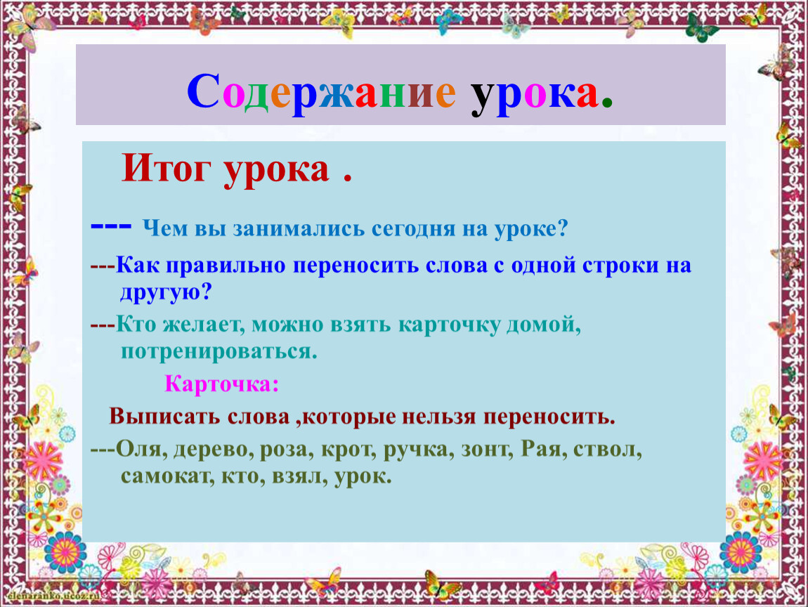 Содержание урока.