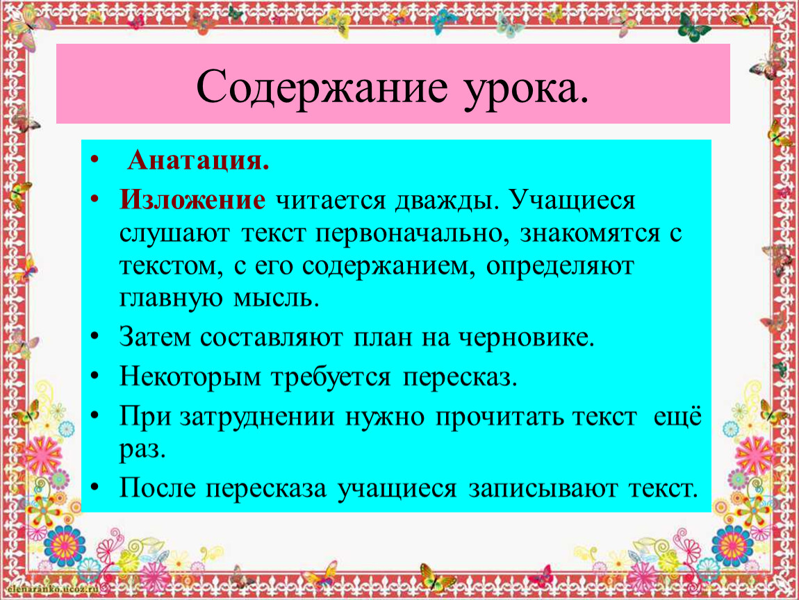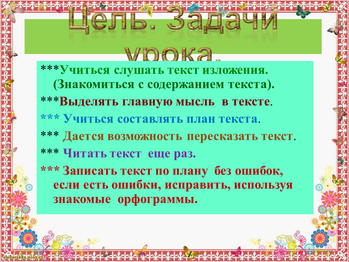 ***Учиться слушать текст изложения. (Знакомиться с содержанием текста).